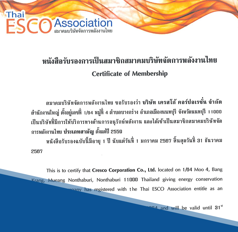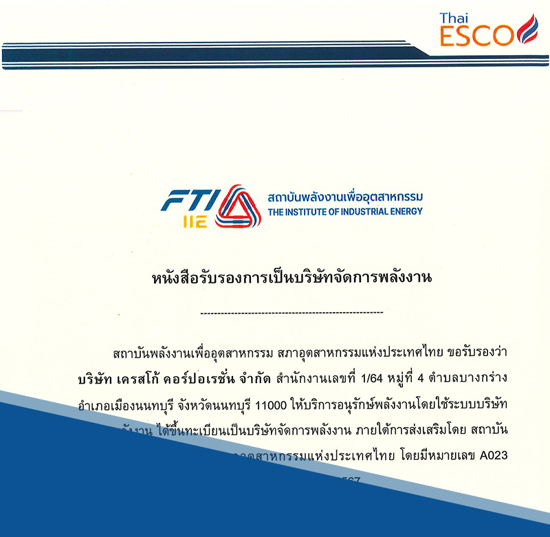 CERTIFICATE AS THE ENERGY MANAGEMENT COMPANY